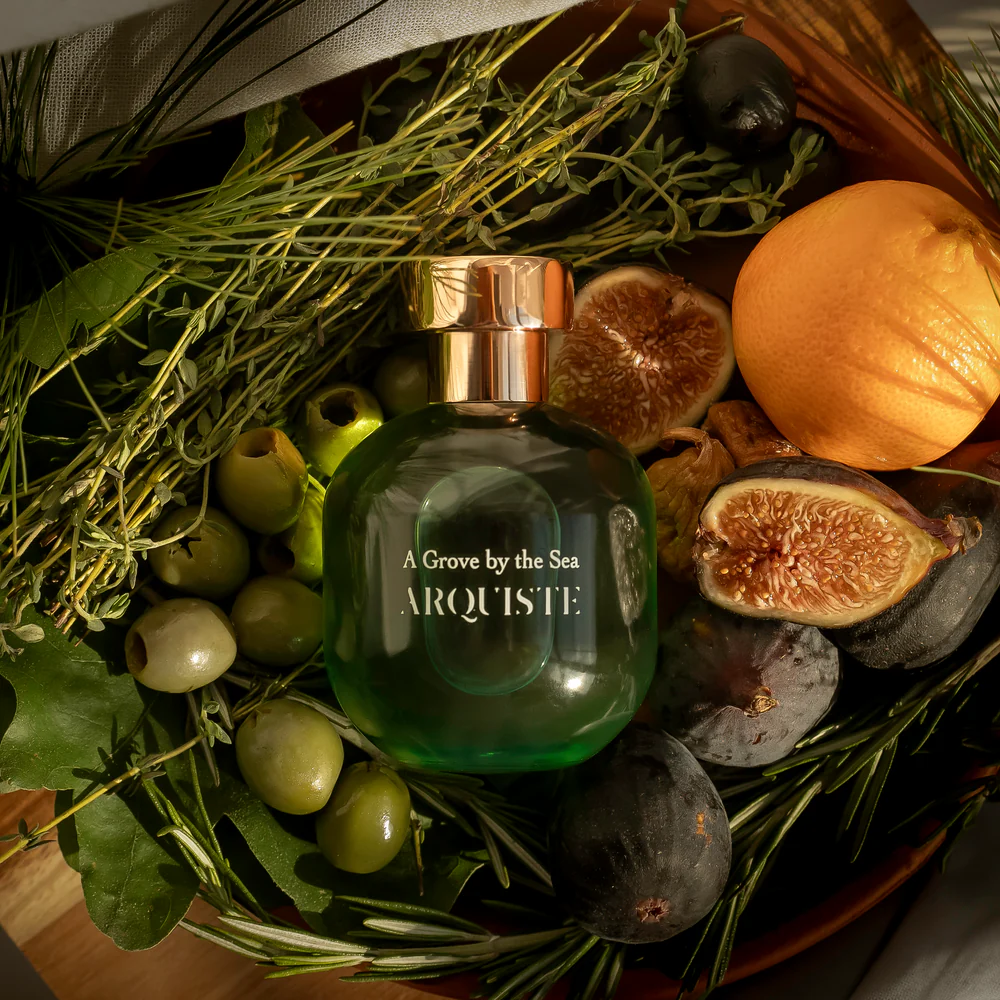 Évoque une oliveraie méditerranéenne au bord de mer, où les pins centenaires rencontrent les embruns salés. Fraîcheur des herbes aromatiques, douceur de la figue et brise marine.
