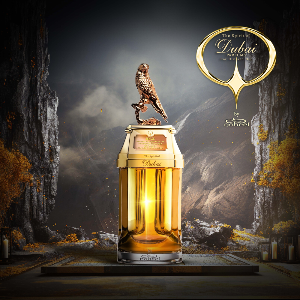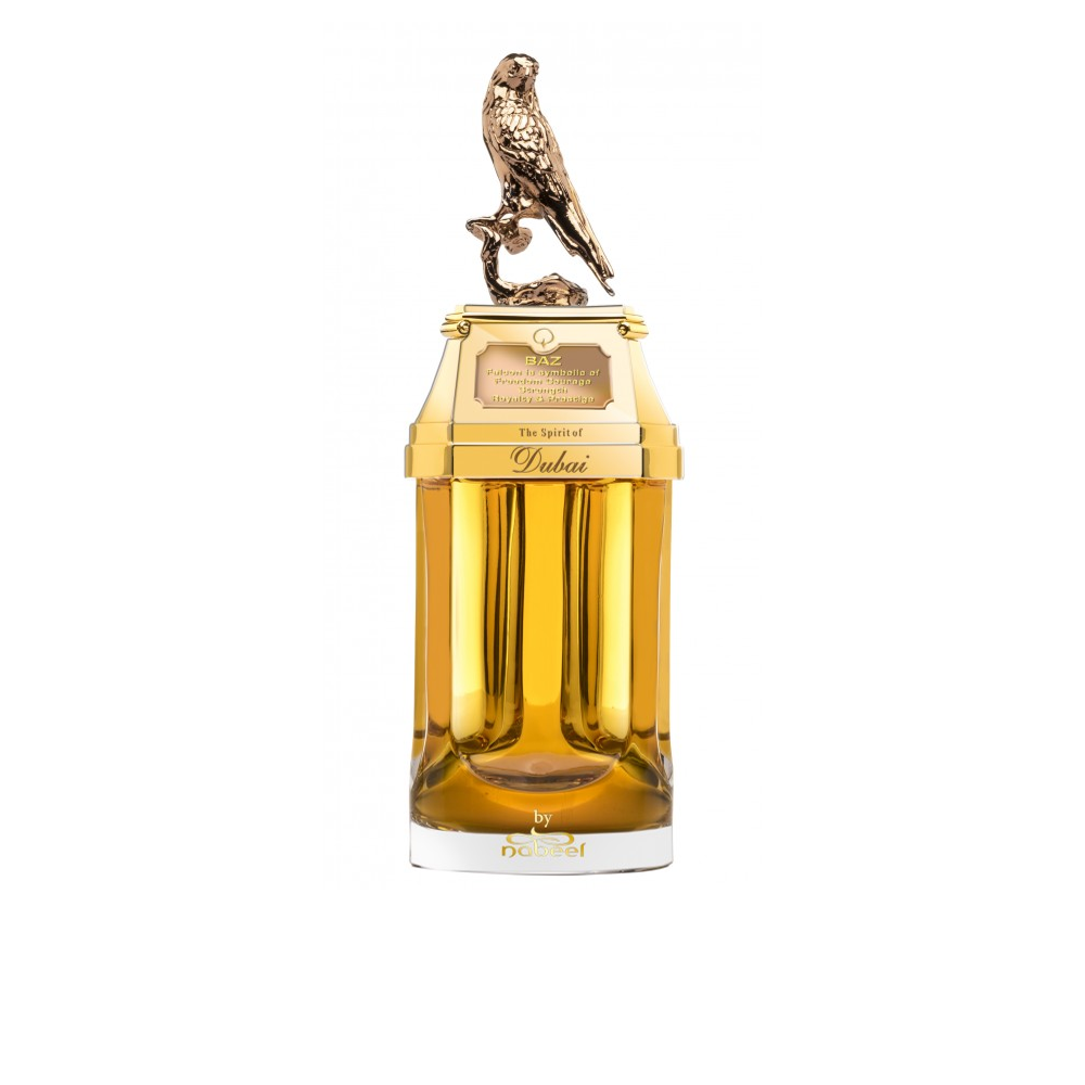 En partant en voyage avec Baz, vous fermez les yeux et inspirez profondément. Vous êtes enveloppé par l’arôme du cuir de faucon, mêlé aux senteurs boisées d’oliban fumé, de vétiver, de labdanum et d’huile d’oud indien.