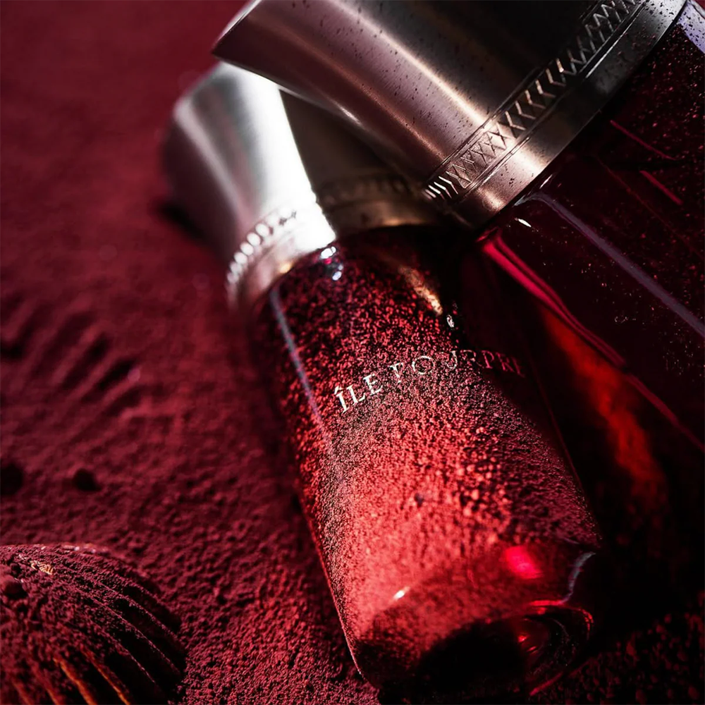 « Sur l’ÎLE POURPRE, il existe un fruit inconnu, peut être même celui de l’imagination. De son jus se dégage une saveur stimulant la pensée, une vision de l’esprit provoquée par l’odorat. Un parfum rare, un face à face entre la fraîcheur du shiso et la sensualité déroutante de la figue noire. »