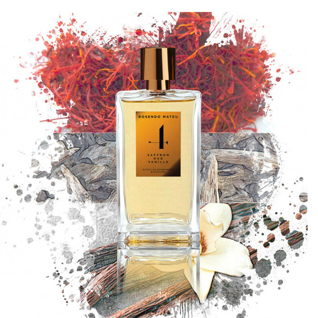 Un voyage olfactif dominé par le safran et l’oud, soutenu par des bois précieux, une myrrhe balsamique et une douceur vanillée. L’ouverture mêle bergamote de Calabre et fleur d’oranger amère, le cœur fusionne cannelle, muscade et iris, le fond s’inscrit dans l’oud, bois de guaïac et labdanum.